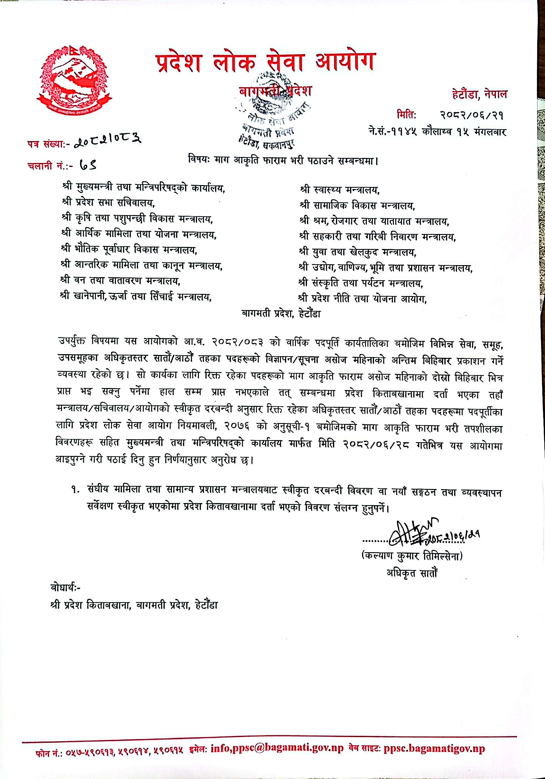 माग आकृति फाराम भरी पठाउने सम्बन्धमा (प्रदेश)